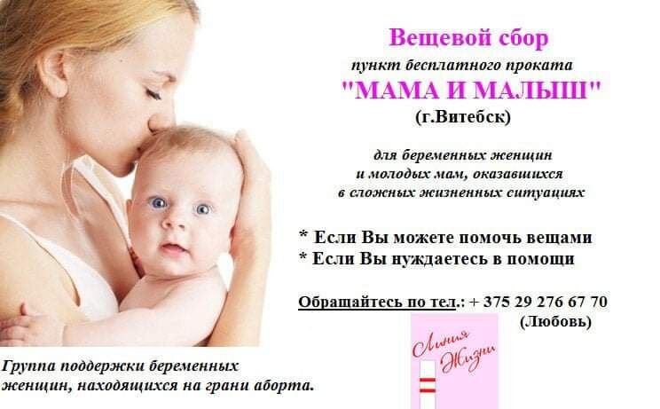 В июне 2021 года мы организовали информационную кампанию, оповещая жителей Витебской области об открытом инициативной группой "Линия жизни" (с которой мы сотрудничали в мае 2021 года при организации конкурса рисунков "Счастливое детство") пункте бесплатного проката "Мама и малыш", куда можно было сдать ненужные вещи, а нуждающиеся семьи могли затем их там получить. Об этом пункте очень мало кто знал, и мы решили эту проблему, напечатав целый тираж цветных буклетов, которые затем сами закрепили на досках объявлений в гинекологиях, пунктах социальной защиты, храмах и т.д.