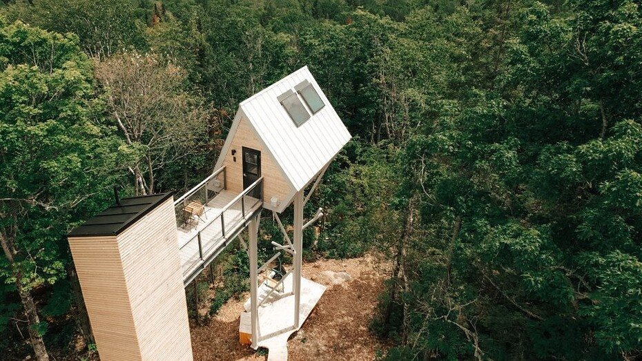 В живописной лесной местности Канады можно снять мини-дом на 12-метровой свае