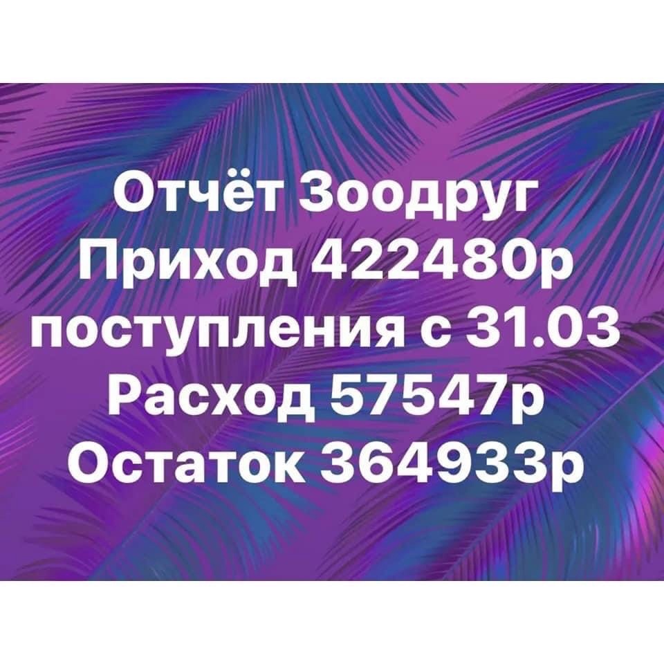 Друзья , промежуточный финансовый отчёт по сбору для Благотворительной Кампании Зоодруг !