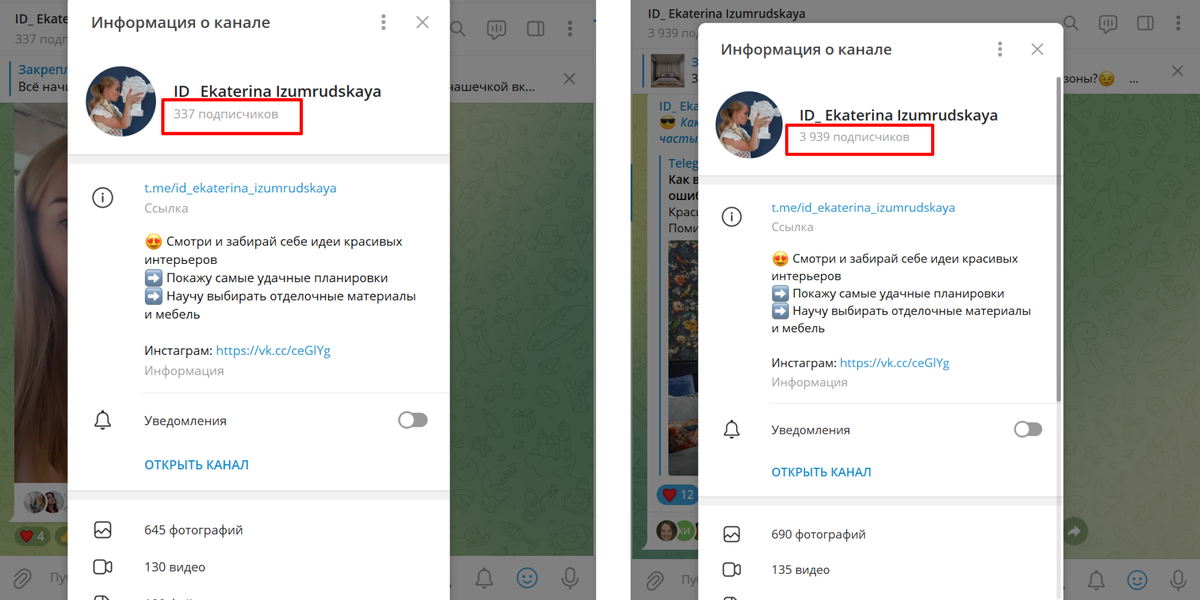 Телеграм канал дизайнера интерьера КОЛИЧЕСТВО ПОДПИСЧИКОВ УВЕЛИЧИЛИ В 10 РАЗ👇 Было - 337. 29.08.2022 Стало x10 - 3 939. 28.09.2022 КОЛИЧЕСТВО РЕАКЦИЙ УВЕЛИЧИЛИ В 2 РАЗА👇 Было - реакций 18. 29.08.2022 Стало x2 - реакций 33. 28.09.2022 КОЛИЧЕСТВО ПРОСМОТРОВ УВЕЛИЧИЛИ В 10 РАЗ👇 Было - просмотров 98. 29.08.2022 Стало x10 - просмотров 1 013. 28.09.2022 Мой телеграм канал Хочешь также? Приходи на бесплатную консультацию. В результате бесплатной консультации вы узнаете, как настроить ВК/Телеграм/Инстаграм в вашем случае и, что надо делать, чтобы получать с них регулярно платежеспособных клиентов. Подходит даже тем, кто раньше не занимался раскруткой аккаунта, но хочет использовать этот инструмент по максимуму. После консультации у вас на руках остаётся видео-запись разговора и схема работы на 3 месяца, следуя которой вы получаете ежемесячно подписчиков и продажи. Заявку оставлять здесь ЖМИ #телеграмм #продвижениевсоцсетях #бизнескейс #дизайнеринтерьера #подписчики #потенциальныеклиенты #пр