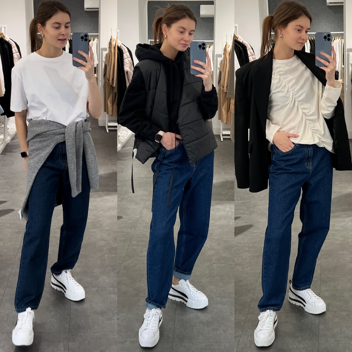 Всем привет, сегодня я, стилист Кайгородова Маша расскажу вам, как использовать ваш гардероб на все 100%💥 В этот раз, в рамках нашей еженедельной рубрики - ВАШ ФУНКЦИОНАЛЬНЫЙ ГАРДЕРОБ, я хочу вам показать, что делать, если ваше любимое сочетание это джинсы + кеды и вы уже не знаете, какой может быть верх у вашего комплекта.. Знаю, что многие очень любят комфортные и удобные образы! Именно поэтому я решила за основу взять сочетание джинсы + кеды и продемонстрировать различные варианты готовых комплектов! Этот вариант про вас? Или вы всегда любите наряжаться?😋
