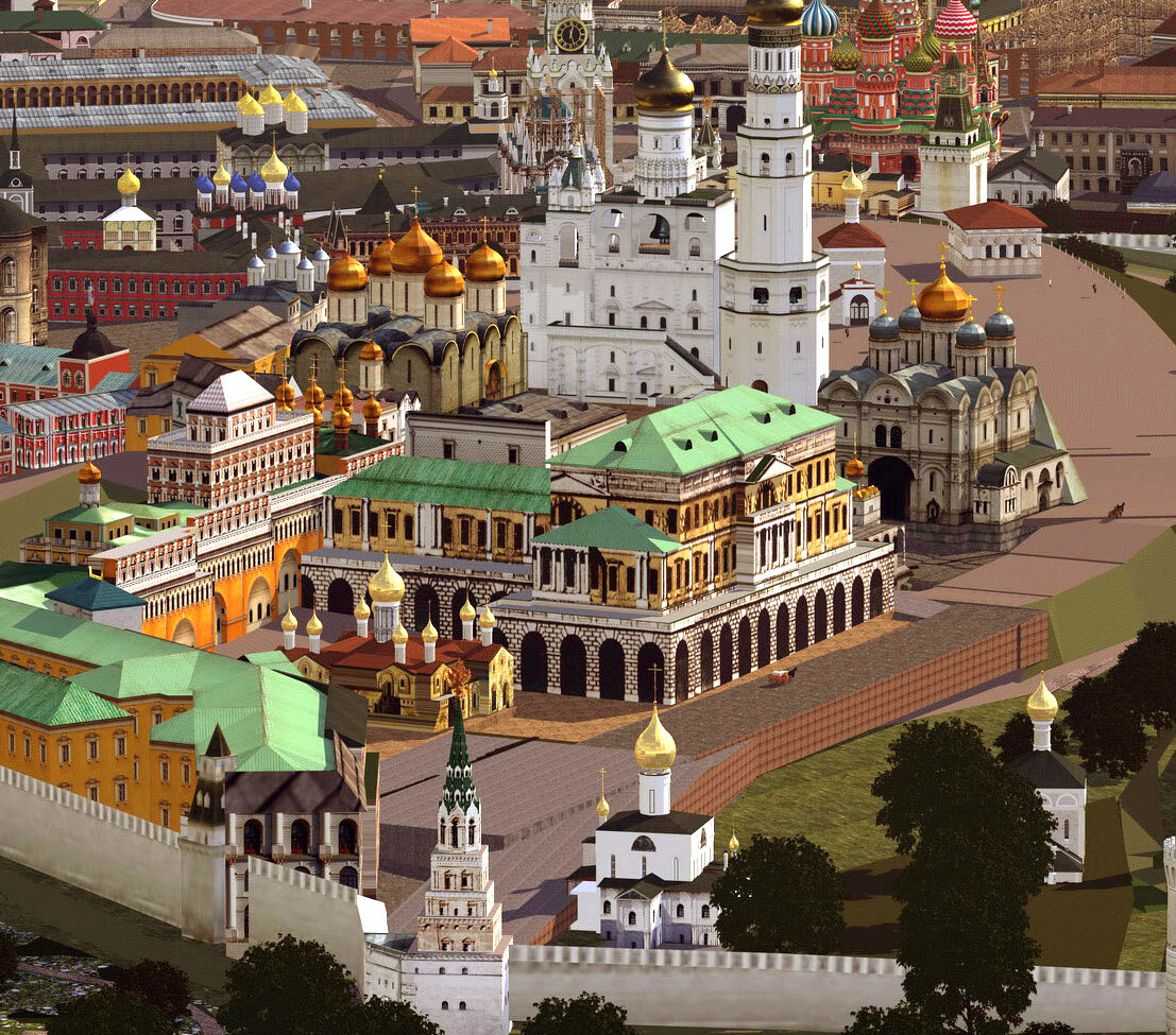 Собор Спаса Преображения на Бору в Кремле, основан в 1330 г. (3D модель). Москва 1812 года, реконструкция.