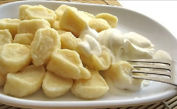 Вкус таких вареников напоминает детский садик, в котором всегда готовили такие вареники. Их ещё подавали с вкусным молочным соусом. А можно подавать вареники со сметаной, джемом свежей ягодой, в общем как пожелаете. Давайте приготовим нежные вареники, которые готовятся очень быстро. В следующей статье выложу рецепт молочного соуса, следите за каналом. Ингредиенты : Творог - 200 гр Яйцо - 1 шт Сахар - 50 гр Мука - 150 гр Соль - на кончике ножа Способ приготовления : Творог смешиваем с сахаром, яйцом и солью. Добавляем муку. Всё тщательно перемешиваем, оставляем постоять 15 минут. Делим тесто на 4 части и выкладываем на присыпанный мукой стол. Раскатываем каждую часть теста на колбаски. Ставим на плиту кастрюлю с водой, чуточку солим и доводим воду до кипения. Тем временем нарезаем тесто-колбаски на небольшие кусочки и запускаем в кипящую воду. Когда вареники всплывут засекам 5 минут и достаём из воды. Вареники готовы. Выкладываем в глубокую миску и кладём кусочек сливочного