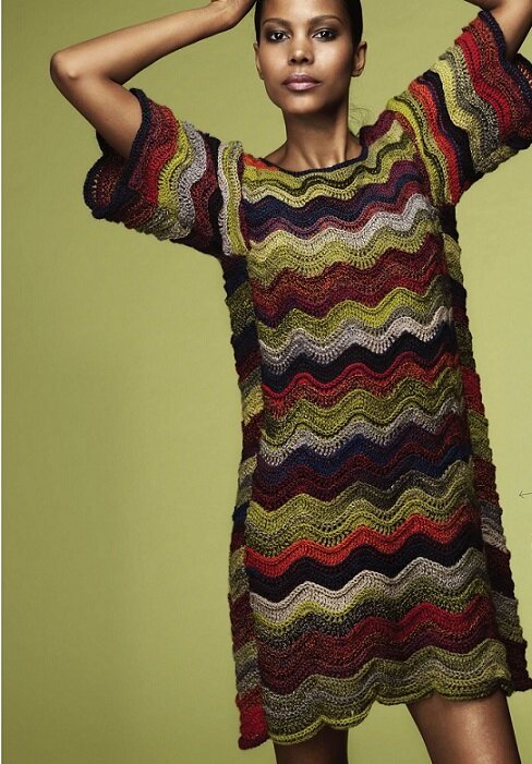 Друзья, всем привет! Сегодня тема - вязание из остатков пряжи. И первыми мне на глаза попались изделия, связанные в стиле миссони узором "Зигзаг", который можно выполнить как спицами, так и крючком. В этом платье крючком участвуют пять цветов пряжи, можно и больше. Для придания полотну рельефности в узоре использованы выпуклые столбики. Узор следующей модели попроще в исполнении: Спицами подобный узор разобран у меня на канале: Конечно, остатки можно применить и на вязание различных кокеток жаккардом: Основной цвет + 5 дополнительных, схема кокетки ниже, узор очень простой. Очень мне понравились изделия, выполненные спицами узором "Лисьи лапки", описание этого узора платное, его можно купить на Равелри, нашла пару схем, вычерченных от руки, возможно, они чем-то помогут. Надо еще посмотреть ролики на Ютуб, кто-то из блогеров должен был дать разбор Модель, в которой собраны очень мелкие остатки ниток, привлекла мое внимание еще и тем, что здесь использована техника лоскутного шиться д