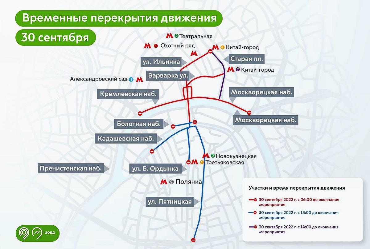 из-за митинга по итогам референдумов о вхождении ЛНР, ДНР, Херсонской и Запорожской областей в состав России, сообщает Дептранс столицы.