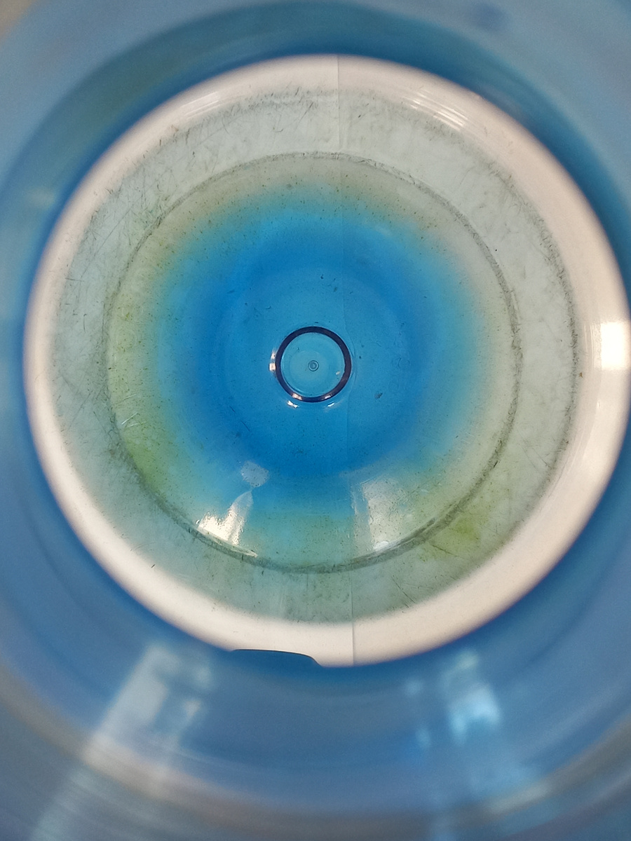 Зеленый налет в бутыли – это одноклеточные водоросли, которые могут размножаться на стенках почти любой посуды, в которой хранится вода. Споры водорослей распространяются по воздуху. Они могут попасть в бутыль с обычной пылью, с любым контактом извне каждый раз, когда вы открываете бутыль. При попадании спор в воду, водоросли начинают размножаться при наличии 2-х условий: это свет и тепло. Иными словами, происходит реакция фотосинтеза, клетка водоросли вырабатывает хлорофилл, и на стенках емкости образуется зеленый налет. Образование зеленого налета внутри бутылей, как правило, имеет сезонный характер – с апреля по октябрь. Это период повышенной солнечной активности, которая обеспечивает вышеперечисленные условия для развития водоросли. Зимой же, когда световой день уменьшается, эта проблема встречается реже. Но с увеличением интенсивности солнечного света она возобновляется вновь. Опасна ли вода из бутылей с зеленым налетом для здоровья? Одноклеточные зеленые водоросли не относятся к
