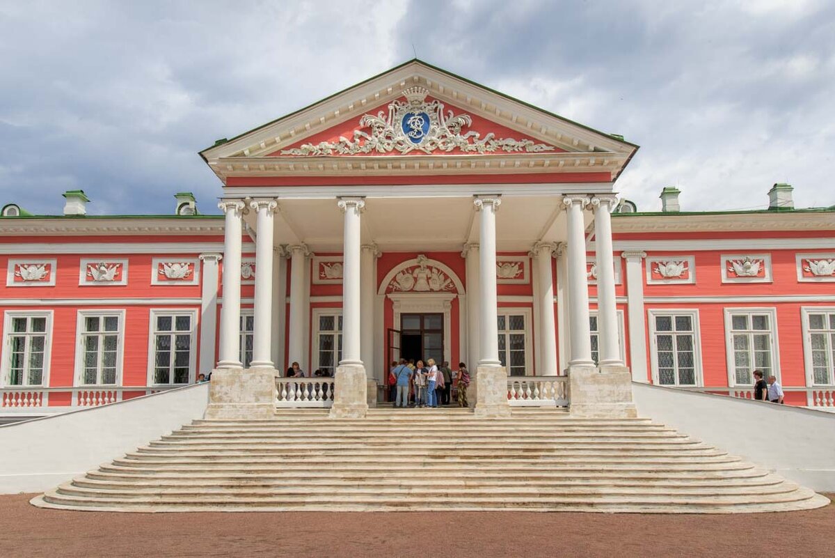 Если взглянуть на современное Кусково с высоты полета птицы или дрона, оно раскинется перед нами во всей красе: ухоженные газоны, узоры цветников, аллеи шарообразных лип, симметричные дымчато-розовые дорожки, набережная вдоль Большого Дворцового пруда. Взгляд непременно задержится на дворце цвета «утренней зари» с рядом стройных колонн и широкой лестницей со сфинксами на пандусах. А дальше – стеклянная легкость Большой оранжереи, охристая вертикаль колокольни, изумрудный купол «Грота», пряничные домики Менажерей – всего около десятка построек одной из самых богатых усадеб в окрестностях Москвы.