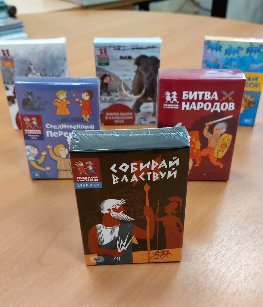 Если вы уже собрали коллекцию из книг серии "Мы живем в...", то наверняка вас интересует развитие интереса ребенка к этим эпохам. Предлагаем добавить к книгам настольные игры, разработанные в этих замечательных исторических сериях. Карточная игра «Жили-были в Каменном веке» - отличное дополнение к познавательным книгам серии «Первобытный мир». Задавая соперникам вопросы, догадываясь и запоминая, какие карты у них на руках, игроки будут собирать серии из 4 карточек, объединённых общей темой: искусство, жилища, орудия труда, еда, племя и так далее. Выигрывает тот, кто соберёт большее количество таких комплектов ну и, конечно, узнает больше о повседневной жизни людей каменного века. Карточная игра «Жили-были в Древнем Новгороде» - отличное дополнение к познавательным книгам серии «Древний Новгород». Задавая соперникам вопросы, догадываясь и запоминая, какие карты у них на руках, игроки будут собирать серии из 4 карточек, объединённых общей темой: искусство, здания, еда, украшения и обер