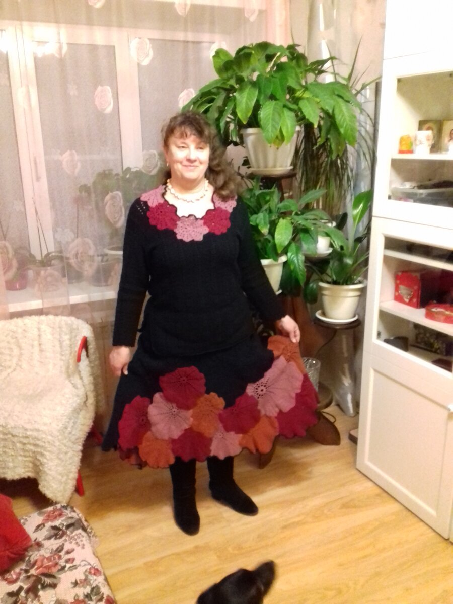 С огромным удовольствием и благодарностью Автору выкладываю работы Натальи Сарапуловой. Наталья - щедрый, доброжелательный, легкий человек с большим чувством собственного достоинства. От ее комментариев на душе становится теплее и я чувствую себя увереннее. Спасибо. Итак. Костюм Листопад. Лично мне эта работа очень нравится. Платье-туника в технике пэчворк. Я не очень понимаю, как связано. Круглая кокетка, а потом отдельно перед, отдельно спинка с вывязыванием пройм? А потом рукава? Очень уютно и тепло! Жаль, нет фотографии на фигуре. Мне кажется, эта вещь из тех, что на фигуре выглядят лучше, чем на плечиках. Вот этот жилет мне очень-очень понравился. Вынашиваю мысль связать себе такой. Большое спасибо Автору за представленные фотографии и разрешение оформить их в отдельную статью.