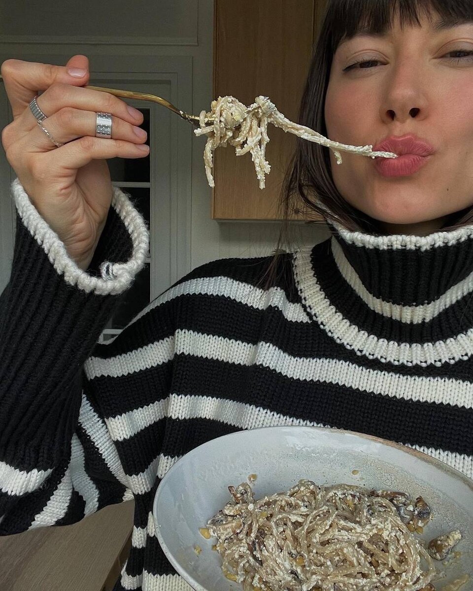Я не большой поклонник пасты, ем её пару раз в месяц, когда очень хочется углеводов. Но в этот раз получилось очень вкусно. Обжаренные грибы, сливочная рикотта и хрустящие грецкие орехи — ммм!