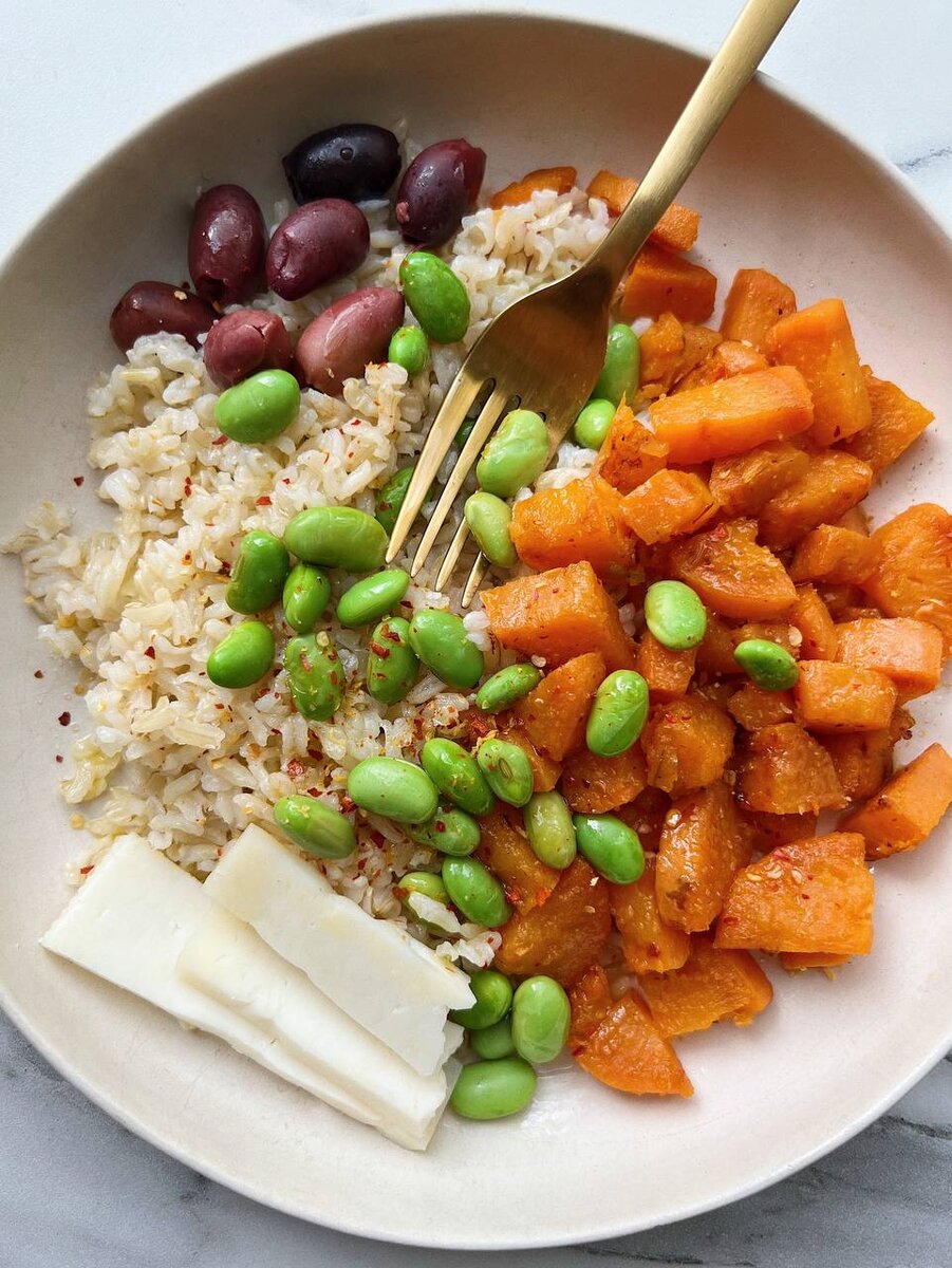 1 Боул с бурым рисом, бататом, эдамаме, оливками и козьим сыром. 2 Тост со сливочным маслом, авокадо и яйцом и второй со страчателлой, сладким помидором и слегка подрумяненными на сковородке кедровыми орешками 🖖🏽 А сегодня в рабочий день — пюрешка с рыбой и салат из офисной столовой. Такое тоже бывает ) ___ Новые посты можно читать в телеграме, вконтакте и инстаграме.