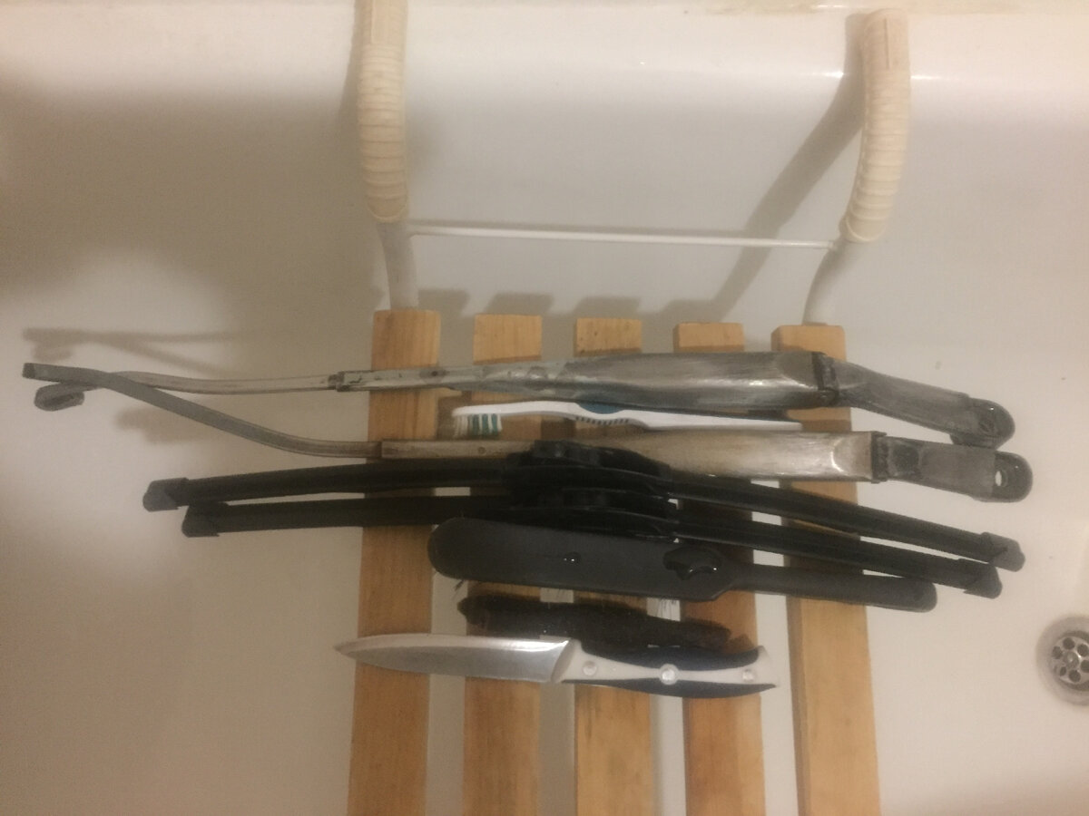 Всем доброго времени суток. Сегодня будет продолжение ремонта Hyundai Lantra J2. Начну пожалуй с внешнего вида машины. Досталась она мне, мягко говоря, не в идеальном состоянии. Передние крылья были помяты и на них проступала ржавчина, на капоте большим куском лежала необработанная шпатлевка (видимо прежний хозяин все таки хотел придать вид машине, но потом забросил эту затею), бампер со стороны водителя был разбит, колеса спущены (позже выяснилось, что травило воздух по ободу). Продолжать можно долго перечислять поломки. Машина стояла у дома и мне как-то раз даже высказали добрые жители моего же дома, что если не уберу машину, они позвонят куда надо и ее увезут на эвакуаторе, им видите ли не где свои машины ставить. Нужно было как то быстрее приводить машину к нормальному состоянию, чтобы она не выглядела, как авто хлам, а то и вправду в один прекрасный день увезут в неизвестном направлении и ищи ветра в поле. Решил начать с того, что было сделать проще всего - с дворников. Дворники частично были покрыты остатками краски, а частично ржавчиной. Вроде бы и мелкая деталь, но в глаза все равно бросается. Я их снял и принес домой. Дома отмыл их от грязи, хорошо прошелся наждачной бумагой, чтобы счистить и остатки краски и ржавчину, довел их до состояния железа, выглядели они вот так, как на фото ниже.