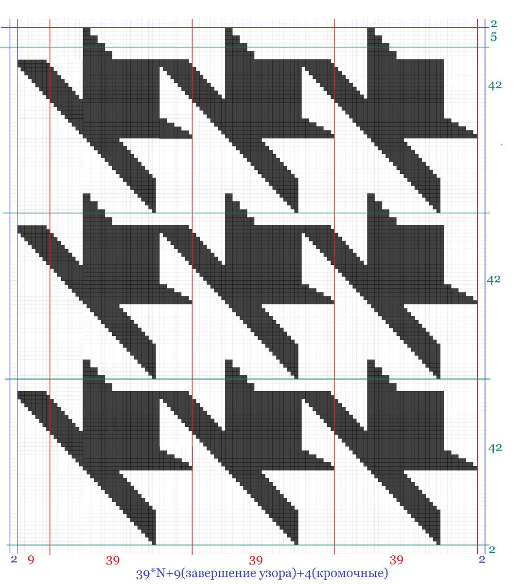 Схему для более мелкого узора гусиной лапки тоже нарисовала: Тут раппорт узора 1