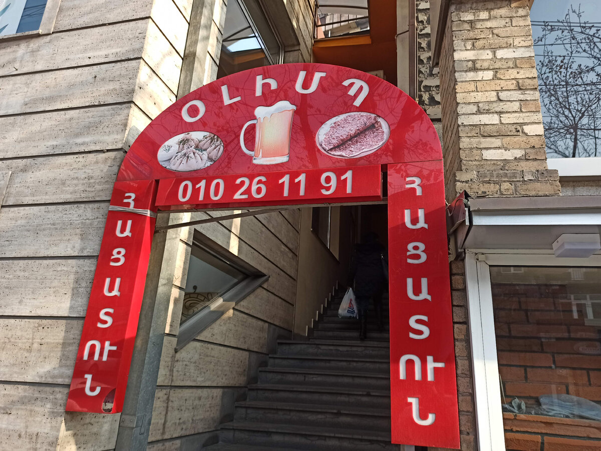 Что понравилось и удивило в местной кухне. Когда ехал в Армению, то представлял, что буду обильно уплетать местные специалитеты, но... 😠 - Автор всё про Грузию да про Грузию пишет, а про Армению ещё ни одной статьи, - пишут в редакцию читатели. Исправляюсь. Скажу честно, чего-то удивительного и невероятно вкусного отведать не удалось. Было холодно, предпочитали питаться дома, поэтому представление о армянской кулинарии у меня вышло скомканным. Итак, прилетели утром 14 декабря 2021 года в Ереван, заселились в съемной квартире и отправились с Ассистентом на прогулку по незнакомому городу. Зима, холодно, поэтому срочно требовались калории. Время раннее - многие заведения закрыты, да пандемия беспредельничает (маски, запустение, закрыты многие заведения). Ура, в этом городе что-то работает. Очень необычное кафе, где выбираешь готовый шашлык или кебаб и при тебе его готовят. Сами пекут сдобу и прочие хлебобулочные изделия. Ценник мега гуманный. Курс: 700 драм = 100 руб. Вертел куриного