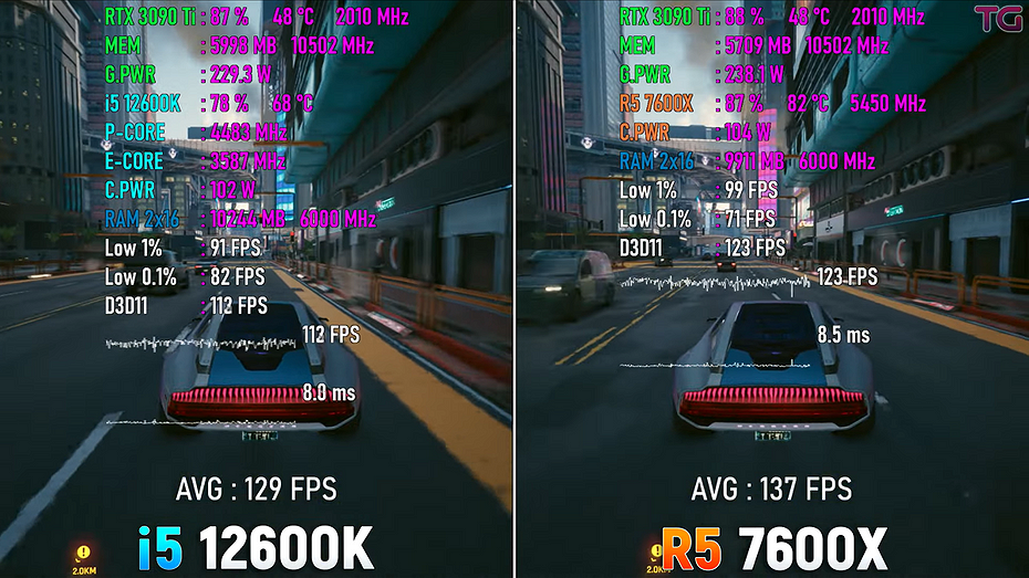 Процессоры AMD Ryzen 5 7600X и Intel Core i5-12600K сравнили в современных играх