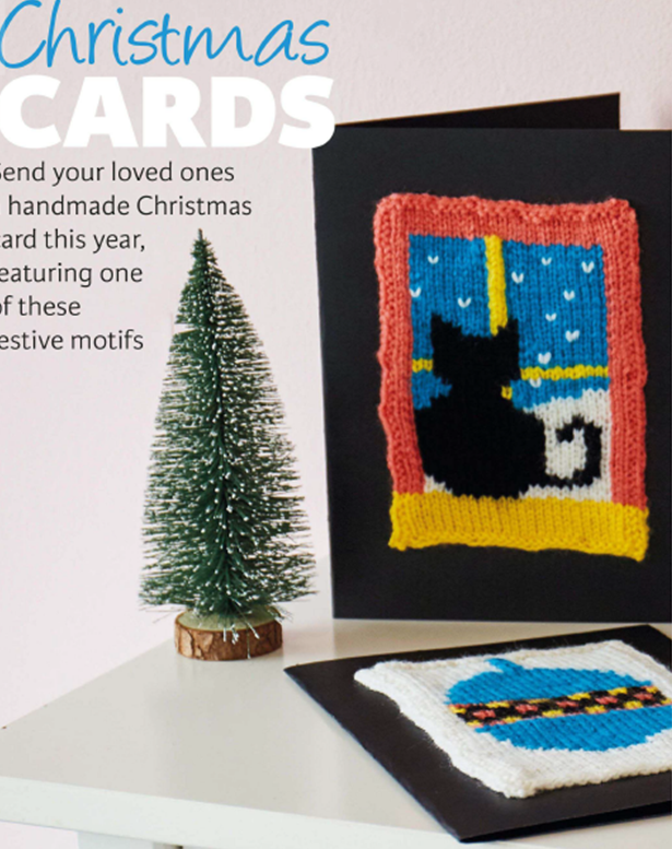 Всем доброго дня! В одной из последних моих статей, я писала об оригинальных вязаных подарках. Кто не читал, можете ознакомиться с ней здесь: В ней я упоминала об открытках с вязаным декором. Сегодня хочу показать вам еще варианты исполнения таких открыток. В них используется вязаная аппликация и контрастный фон самой открытки. Получаются очень красивые, оригинальные открытки. Если вам они понравятся, можно попробовать и сделать их заранее. Так как тематика у них новогодняя, то в запасе у вас остается 3 месяца. Смотрим три варианта открыток со схемами. Вот такой милый котик, смотрящий в окошко на зимний пейзаж. Вяжем аппликацию, причем совсем не заморачиваемся с кончиками на изнаночной стороне. Так как сама аппликация приклеивается к основе. На черном фоне выглядит очень ярко. Но каждый может выбрать фон по желанию. Схема данной аппликации. Обратите внимание на той же картинке, лежащую рядом открытку. Можно связать «стеклянный шар», которыми украшают елку. Схема этого шара. И еще одна