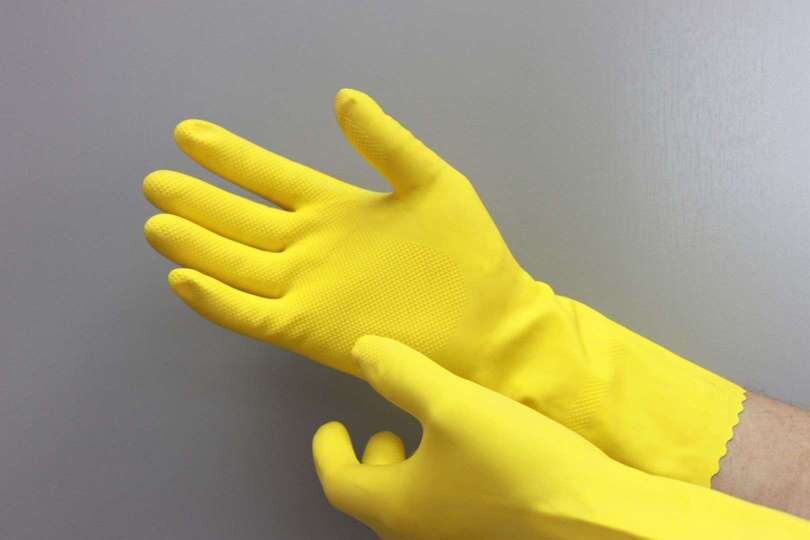 Кстати, сегодня вы можете воспользоваться и доступной альтернативой – так называемыми крем-перчатками. Каждый раз перед использованием средств для уборки помещений наносите на руки специальный крем, который образует на коже тонкую стойкую пленку. Она защитит кожу от негативного воздействия бытовой химии.
