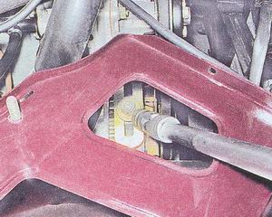 3. Торцовым ключом на 17 мм с карданом и удлинителем (ключом на 13 мм для генератора 9412.3701) отворачиваем гайку крепления генератора к регулировочной планке. 4. Снимаем грязезащитный щиток моторного отсека.