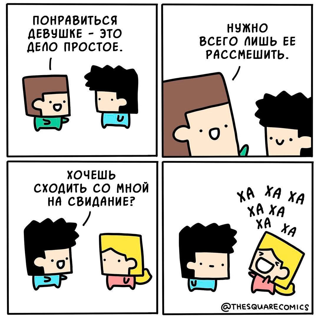 Друзья и близкие часто советуют нам как поступить в той или иной ситуации. Кто-то прислушивается к таким советам, кто-то просто молча принимает их к сведению, ну а кто-то - активно игнорирует. В этом плане сфера отношений - это как раз то, чем принято открыто делиться и давать друг другу рекомендации. Есть даже куча книг и треннингов о том, как с кем-нибудь познакомиться и завести крепкие отношения. Но и от дружеских советов тоже никуда не денешься, особенно когда речь заходит о людях, которые давно ни с кем не встречаются. В сегодняшней подборке я как раз решил собрать несколько смешных комиксов, в которых озвучены те или иные советы по поводу знакомств, свиданий и отношений. Удачные ли это советы? Давайте посмотрим. Индонезийский художник Алвин Хуано (Alvin Juano) в рамках своей серии The Square Comics («Квадратные комиксы») рисует простые, понятные и в то же время очень смешные комиксы о повседневной жизни. Главный герой его зарисовок - молодой темноволосый парень, образ которого яв