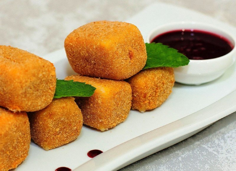 Если вы любите добавлять сыр во все блюда, то вам наверняка понравится обжарить сыр в панировке с хрустящими овощами. Готовится он очень легко. Для этого блюда мы будем использовать моцареллу. Он лучше всего плавится и имеет нежный сливочный вкус. Но, если у вас по каким-либо причинам нет такого сорта, можно заменить его чеддером, либо любым полутвердым. Сыр нарезают слайсами, панируют в муке, яйце и сухарях, а затем жарят во фритюре до румяной золотистой корочки. Это базовый рецепт, а далее перед вами открывается огромное поле для экспериментов. К муке можно добавить любимые специи (сушеные травы или острый перец). А в панировочные сухари – семена кунжута или молотые орешки. Придумывайте ваш собственный рецепт, от которого и вы, и ваша семья будет в восторге! ИНГРЕДИЕНТЫ Для подачи: ПОШАГОВЫЙ РЕЦЕПТ ПРИГОТОВЛЕНИЯ Шаг 1 Подготовьте все ингредиенты по представленному списку. Сыр нарежьте небольшими кусочками, толщиной 1 см. А затем разрежьте каждый из них на две одинаковые половинки. Ша