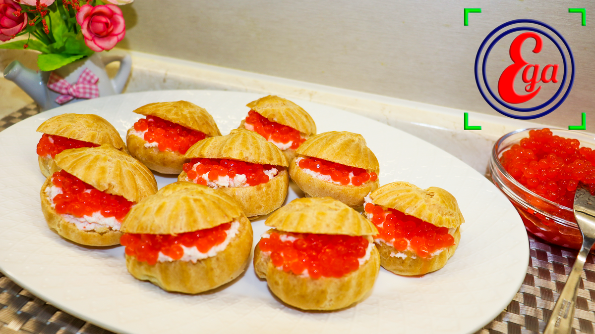 Предлагаю рецепт закуски, которая будет эффектно смотреться на праздничном столе, напоминая открывшиеся морские ракушки. А вот готовится она из совсем простых ингредиентов. Профитроли, наполненные пастой из творожного сыра и крабовых палочек – это не только красиво, но и очень вкусно. ! Ингредиенты в конце рецепта. Рецепт: 1. Небольшую кастрюлю ставим на огонь. В кастрюлю кладем сливочное масло, выливаем воду и добавляем соль. Содержимое кастрюли доводим до кипения. Когда растает масло убавляем огонь, всыпаем муку и быстро замешиваем тесто, разбивая мучные комочки. Кастрюльку убираем с огня и даем содержимому остыть до теплого состояния. 2. Теплое тесто перекладываем в миску, разбиваем яйцо и с помощью миксера соединяем его с тестом. Затем добавляем еще одно яйцо и опять с помощью миксера все перемешиваем. Так вводим все яйца. Тесто получается тягучим и липким. Кол-во яиц зависит от их размера, если яйца крупные, то их понадобится 3 штуки, а если мелкие, то 4. Тесто не должно быть густ