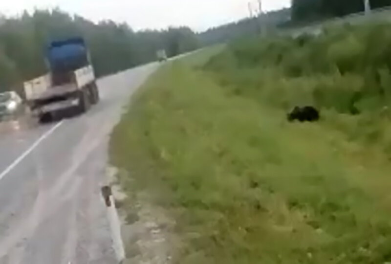 Инцидент произошел 1 августа на федеральной трассе ХМАО. Водитель грузовика, увидел молодого медведя, остановил фуру на обочине и решил его подкормить. Косолапый спокойно перешел дорогу, встречные автомобили останавливались, давая ему дорогу. Медвежонок хотел уйти в лесополосу, но ему не дали.