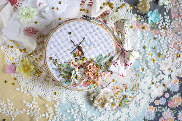 Всем привет. Захотелось добавить в осенние тона немного легкости и свежести, яркости и веселья. Так появился мини-альбом с открыткой из коллекции "Каникулы в Париже". Замечательная, светлая, добрая коллекция про приключения парижанки. И миник у меня получился такой же милый и веселый. Для обложки вышила мельницу, потому что именно мельница у меня ассоциируется с Францией. И остальную композицию складывала уже на маковом вышитом поле. Мне показалась эта идея интересной и необычной. И так меня захватила, что я радостно купила еще несколько наборов для вышивки))) И открытку к минику в пару сделала с такой же композицией, но уже с Эйфелевой башней. Давайте заглянем внутрь миника. Раз уж он такой маленький, то пришлось придумывать, как располагать фотографии. И я решила, что сделаю кармашки, а будущая хозяйка сама в них разместит фотографии. Несмотря на небольшой формат работы я использовала тут много материалов, в общем-то все что есть в коллекции. Вырезала, вырубала, наслаива