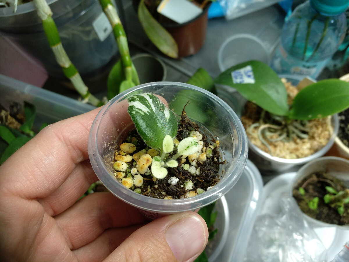 Продолжаю рассказ что наросло у меня на стеллаже. И не только. Снова пестролистный сорт фиалки выдал мне беленькие листики. Это Н-Горный воздух. (Катерина, спасибо!!!). Буду растить, наблюдать, ждать позеленения. Здравствуйте! Меня зовут Ирина. Я рассказываю про свои растения. Комнатные и на даче в Ленобласти. Распушилась моя малышка мини пеларгония Excalibur. Надо черенковать, в том числе растить себе новый кустик. Этот был в статусе маточника, таким и куплен, таким пока и является. Надо наводить порядок. От неё есть маленькие укорененные череночки. Никак не соберусь устроить им приличную фотосессию. Безымяшка мини из Оби цвести не хочет. Один раз я видела цветоносы, но пропустила полив и они засохли. Нога длинная, надо переукоренять. Причем уже и запасные экземпляры есть, а всё никак не соберусь обрезать. На подоконнике доцветает гимнокалициум. Сегодня была в его "родном" магазине, искала подруге такой же. А с бутонами уже нет, осень, однако. Точнее есть, два, большиииие. Заехала в