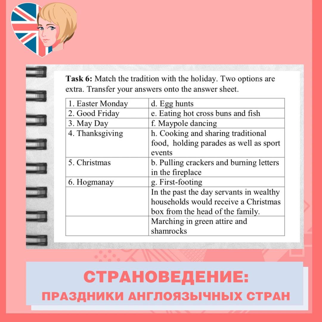 Дорогие друзья, приветствую 🖖 В преддверии новогодних праздников познакомимся с вами с праздниками и традициями англоязычных стран. 🐣Easter Monday (Светлый понедельник). В Великобритании этот день официальный выходной. Символы - пасхальное яйцо (Easter egg) и пасхальный кролик (Easter Bunny). Помимо традиционного крашения яиц также присутствует мода на шоколадные яйца. Пасхальная охота (Easter Egg Hunt) - традиционное развлечение маленьких детей. Они ищут крашенные яйца спрятанные в доме или в саду их родителями. Обычно родители оставляют тематические подсказки. Дети говорят: «We are going to an Egg Hunt» - фраза из популярной детской книжки. ✝️Good Friday (Страстная Пятница). Страстная пятница - день скорби. В этот день люди посещают трехчасовые службы в церквях. Традиционное блюдо этого дня - тёплые и ароматные булочки с изображением креста (hot cross buns). Вместо мяса в этот день едят рыбу (fish), а алкоголь повсеместно запрещён. 💐May Day (Первомай). Это языческий п