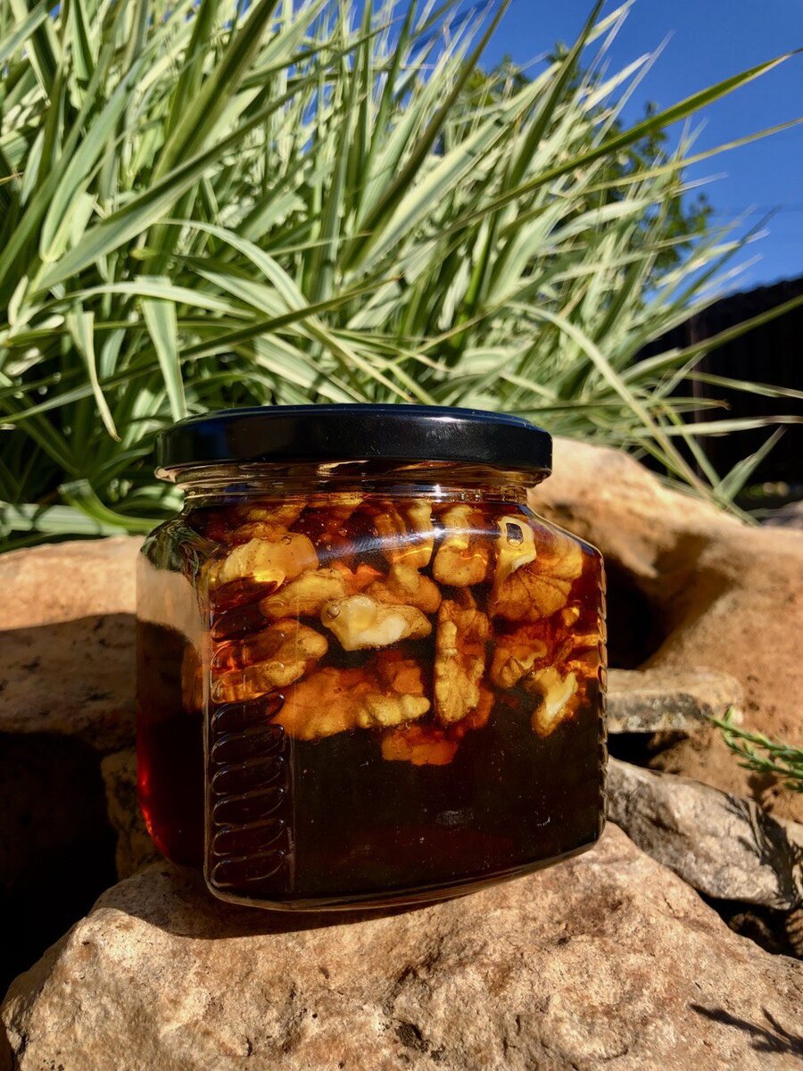 Грецкий орех с медом – натуральное средство, обеспечивающее организм витаминами, минералами, белками, жирами и углеводами. Поэтому его рекомендуют подросткам, взрослым, пожилым людям, а также для женщин и мужчин. Грецкий орех – источник жирных кислот, марганца и меди для организма. Также в их состав входит молибден и биотин витамина B. Мужчины с помощью этого продукта могут улучшить потенцию, а для женщин орехи очень полезны в период беременности и кормления грудью. Полезные и вредные свойства Чем полезен грецкий орех с медом? Грецкие орехи с медом – кладезь полезных веществ и витаминов, способных излечить многие распространенные проблемы со здоровьем. Их полезность нельзя переоценить. Давайте разберемся, в чем польза и вред грецких орехов с медом. При благоприятном употреблении они положительно влияют на все органы и системы организма. Следовательно, польза смеси с медом заключается в: В свою очередь, грецкие орехи настоятельно рекомендуются для женщин во время беременности. Орехи
