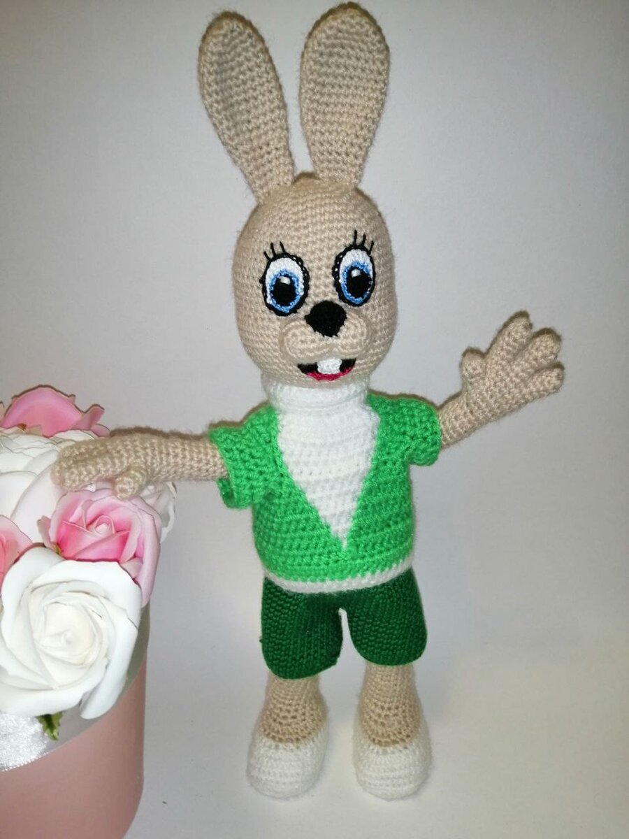 Зая получился 29 см без ушек, на проволочном каркасе.