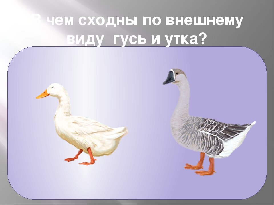 чем разница гуся и утки? Основные внешние отличия: гусь крупнее (это можно понять только в ссравнении, либо с чем-то, либо когда он рядом с уткой) голова и клюв гуся сплюснуты с боков, у утки сверху и снизу, также и само тело утки более плоское шея гуся длинне утиной относительно туловища лапы гуся поставлены чуть ближе к центру тела Как отличить муларда от утки по внешнему виду? Муларды обладают колоритным внешним видом, который позволяет их без труда отличить от других пород уток. Как правило, они имеют белый окрас, хотя иногда присутствуют серые или черные перья на крыльях. Обязательным является небольшое черное пятно на голове муларда, прямо на затылочной части – это отличительный показатель породы. Как определить где гусь а где гусыня? Чтобы суметь определить, где самка, а где самец, нужно расположить птицу так, чтобы ее задняя часть свисала, после чего опустить хвост вниз и с помощью 2-х пальцев раскрыть клоаку. Если есть половой орган, это гусак, если нет — гусыня. FermoVed.ru