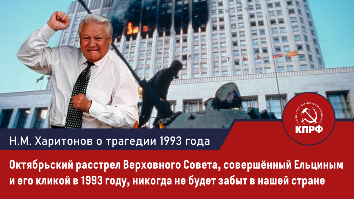 Октябрьский расстрел Верховного Совета, совершённый Ельциным и его кликой 3-4 октября 1993 года, никогда не будет забыт в нашей стране.