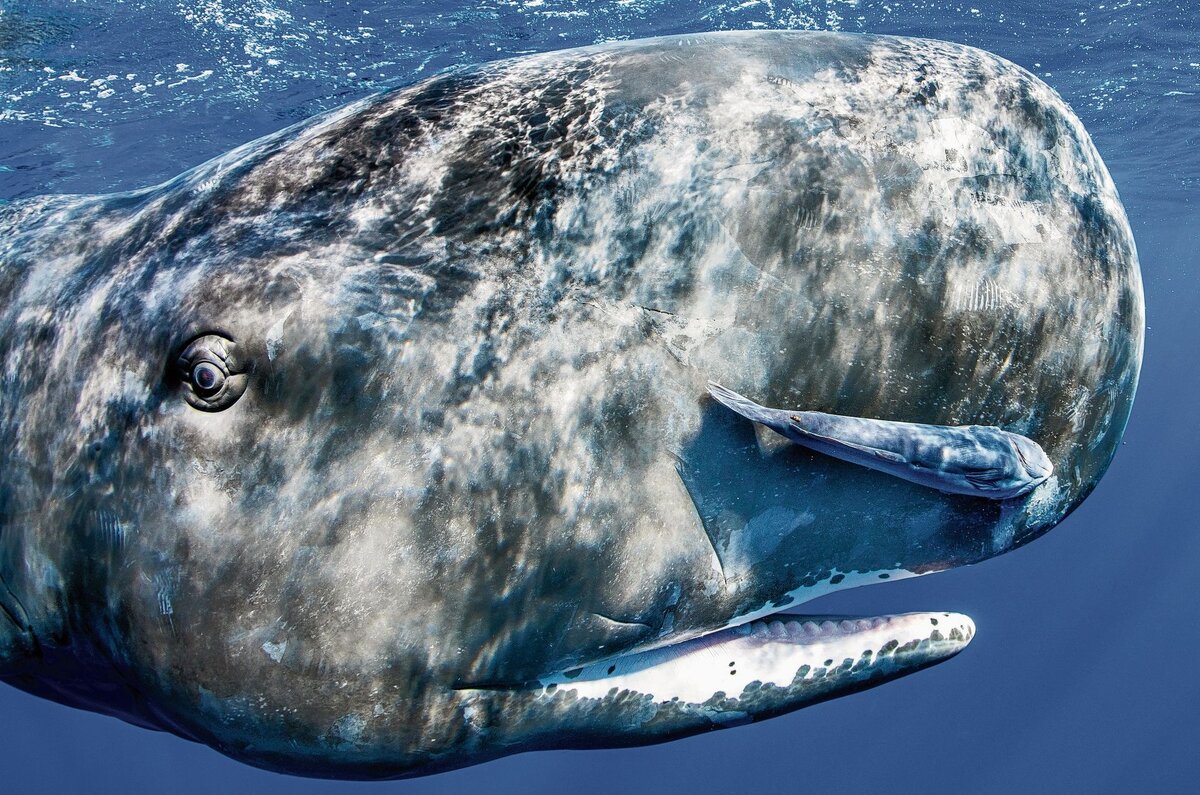 Кашалот - морской гигант из семейства млекопитающих, практический самый крупный из зубатых китов. Размеры кашалота действительно впечатляют. Взрослый самец может достигать длины тела до 20 метров, самки же уступают в размерах мужскому полу практически вдвое. Половозрелая самка длиной не более 10-15 метров. Половые различия кашалотов ярко выражены в размерах и телосложении. Имеют разное количество зубов. Внешний вид кашалота имеет характерные особенности, его огромная голова занимает около трети тела, а окрас варьируется в темно-серых оттенках с отливом коричневого. Кашалоты не любят одиночества и относятся к стадным видам животных. Стадо может достигать сотни и тысячи голов. Кашалот хищник, и рацион его состоит из гигантских кальмаров, моллюсков и рыб, в погоне за которыми приходиться погружаться на глубину более 2000 метров. Разыскать пищу ему помогает ультразвуковая эхолокация. Издаваемые ультразвуковые сигналы дезориентируют добычу и упрощают поимку. Эхолокация крайне важна для них,