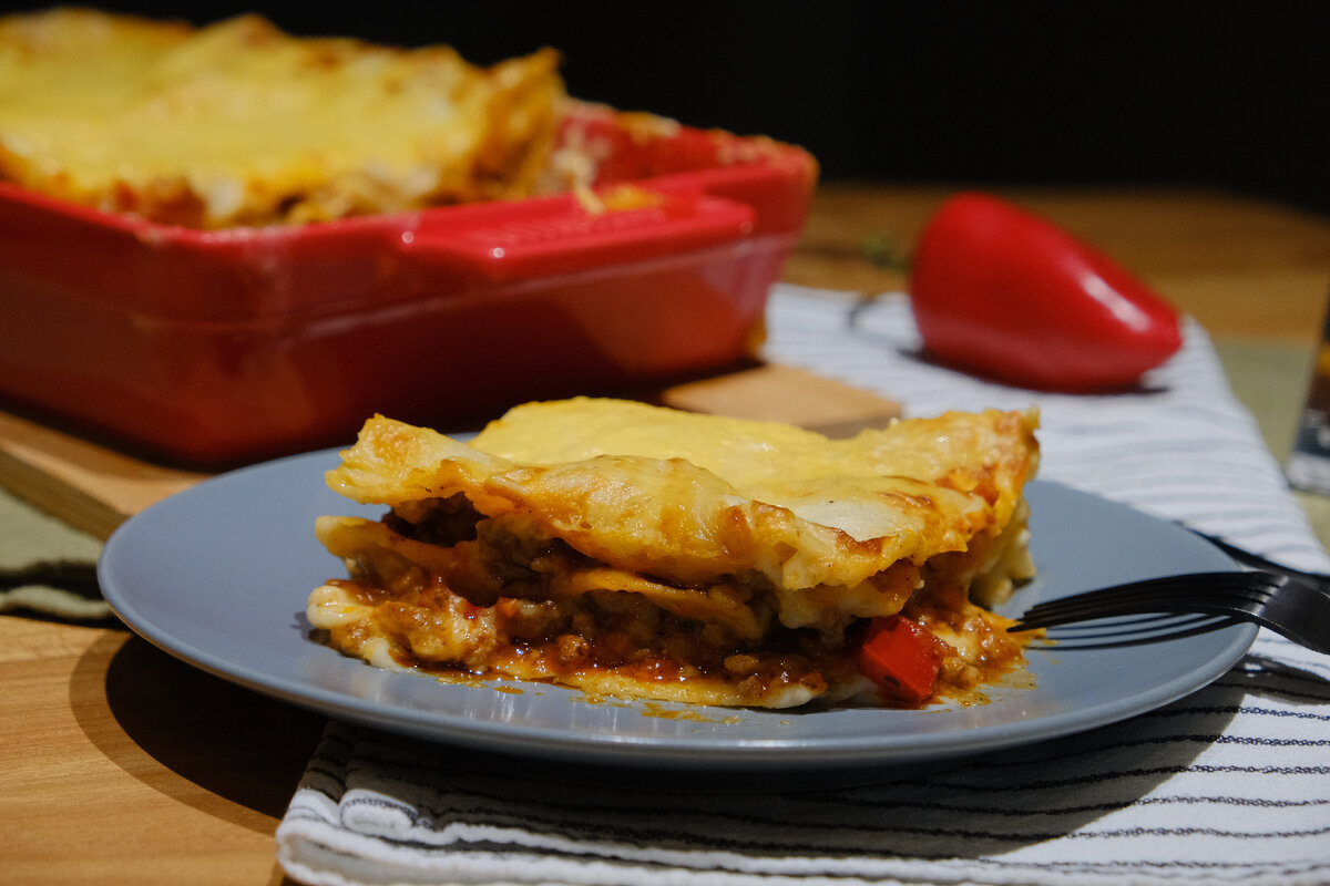 Лазанья одно из любимых блюд с макаронами, которое я могу есть бесконечно! Сегодня хочу поделиться своим простым рецептом, который каждый может повторить у себя дома, если у него есть духовка. Этот рецепт не похож на оригинальный итальянский, но тем не менее он чертовски вкусный! Время приготовления 30-40 минут Ингредиенты: Приготовление: 1. Начнем лазанью с приготовления соуса Бешамель. Сначала необходимо растопить на медленном огне сливочное масло. К растопленному сливочному маслу добавляем муку и быстро размешиваем, чтобы не образовывались комочки, пару минут непрерывно помешиваем. Следом добавляем молоко и перемешиваем до однородности. На медленном огне доводим соус до загустения, добавить соль и перец. 2. Нарезать небольшим кубиком лук и перец. 3. Обжарить лук в небольшом количестве масла до прозрачности и немного можно поджарить. Следом добавить перец и еще минутку подержать на огне. Добавить фарш, соль, перец и специи по вашему желанию. Обжарить его вместе с овощами пока не вып
