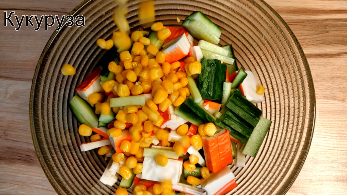 Приветствую всех кто заглянул на мой кулинарный канал. Когда наступает время праздников, то часто задумываешься что приготовить на стол к приходу гостей. Салаты всегда есть у меня на столе при любом празднике, но готовлю по разным рецептам. В данной статье поделюсь с вами рецептом салата, который всегда готовлю к любому празднику. Данный салат нравится всем и кушаем его всегда с удовольствием. Для приготовления нам понадобится: Для приготовления салата, изначально нарезаем огурец и крабовые палочки на полоски, а также добавляем кукурузу. На тёрке измельчаем сыр и добавляем к общей массе. Яйца разбиваем в миску и взбиваем до однородной массы, а после выливаем на сковороду и жарим с двух сторон, распределяя по всей сковороде. Полученный блин нарезаем на полоски и добавляем в салат. Осталось добавить соль, специи по вкусу и майонез или сметану. Размешиваем до однородной консистенции и салат готов. Вот так просто можно приготовить интересный, а главное вкусный салат на любой праздничный с