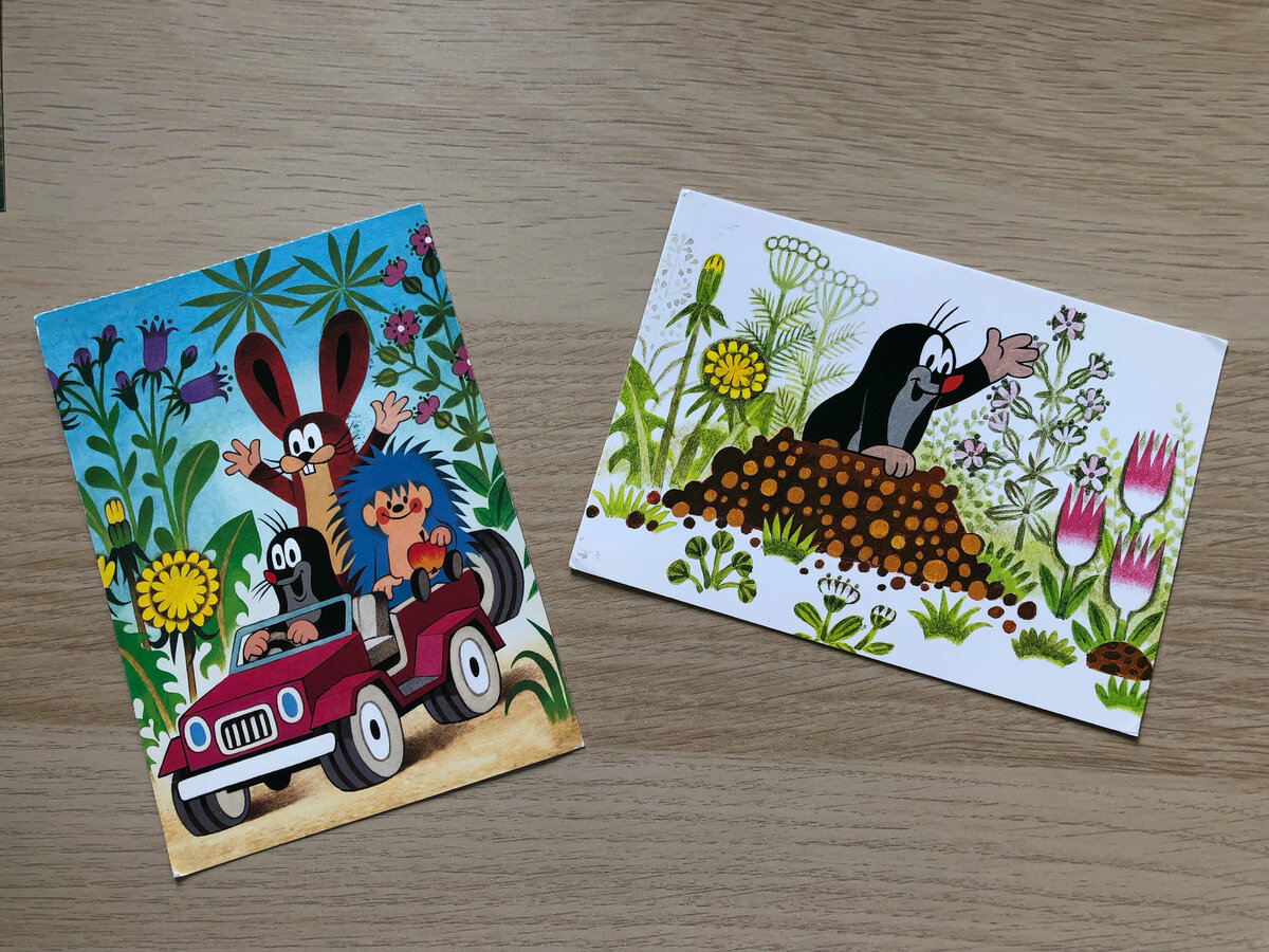 Крот, по-чешски Krtek — не только мой любимец. Многие помнят его по старому чешскому мультсериалу. Автор книг о кроте и его друзьях — Йозеф Новотны, а нарисовал их всех Зденек Милер. Я была просто счастлива, когда крот прибыл ко мне со своей родины, из Чехии (город Хрудим (Chrudim)).