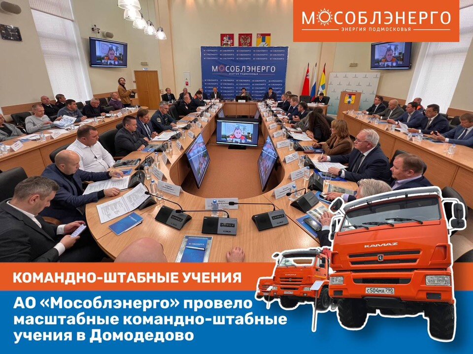 АО «Мособлэнерго» провело масштабные командно-штабные учения по отработке взаимодействия при ликвидации нарушений нормального режима работы электрических сетей в период пониженных температур с прекращением электроснабжения объектов социальной инфраструктуры микрорайона Северный г. Домодедово Московской области. Оперативный штаб КШУ был развернут 6 октября 2022 года в здании администрации Домодедово. В учениях АО «Мособлэнерго» приняли участие представители Министерства энергетики Московской области, министерств образования, здравоохранения и жилищно-коммунального хозяйства Московской области, компаний ТЭК региона, территориальных подразделений МЧС и МВД, администрации Домодедовского городского округа, а также единой дежурно-диспетчерской службы. По легенде учений в результате технологического нарушения в сетях компании без электроэнергии остались более 3 тысяч жителей микрорайона Северный г. Домодедово, а также целый ряд социально значимых объектов, запитанных от подстанции ПС-379 110/