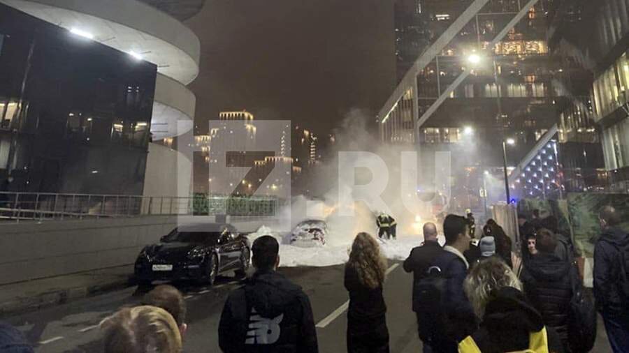 Инцидент произошел на Пресненской набережной, 12, у башни «Федерация». Мужчина с зажигательной смесью и предметами, напоминающими петарды, в руках поджег свой автомобиль Volkswagen Polo.