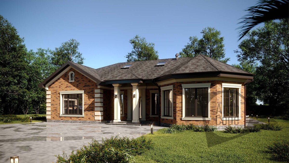Красивый проект одноэтажного дома с мансардой и банным комплексом