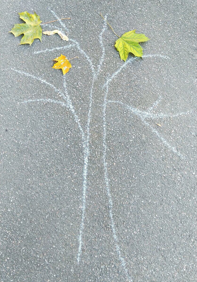 Развивающие игры для малышей на улице. Просто и с удовольствием! Идея этой игры родилась из обычного" мама, давай мелками вместе рисовать!!!". Рисовать мелками не люблю. Но надо. Вот и придумываю разные простые хитрости. На дворе осень - поэтому я нарисовала стволы деревьев. А дальше - все просто! Собираем листья и плоды. Уточняем, что у разных деревьев- разные листья. Украшаем нарисованные деревья листиками - и готово! Итого : Знакомство с разными деревьями и их листьями. Поиск красивых листьев. Внимание к окружающему нас миру и его разнообразию