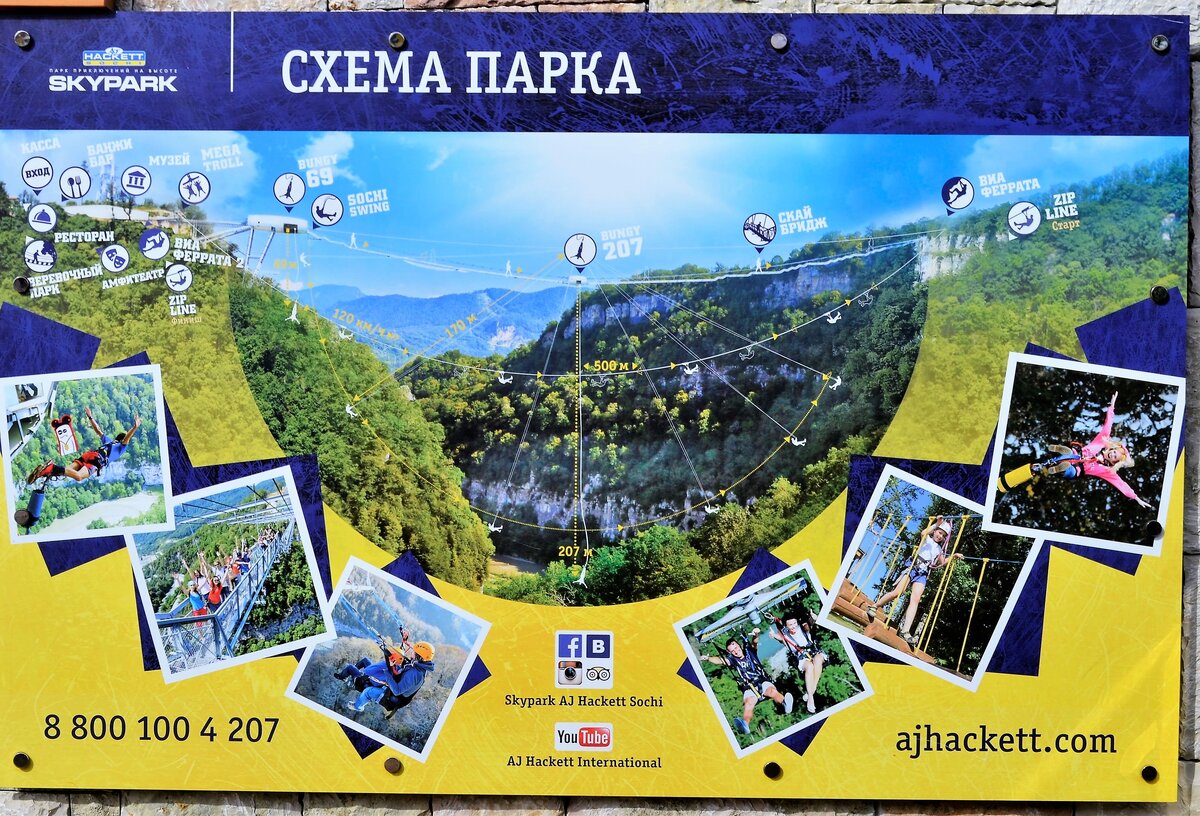 Skypark (скайпарк) — одно из самых популярных экстремальных мест в Сочи на высоте 330 метров над уровнем моря. Этот уникальный парк, сочетающий в себе красоту дивной природы и открывающего пейзажа, состоит из экстремальных аттракционов, самого длинного в России подвесного пешеходного моста, ресторана, музея и амфитеатра.