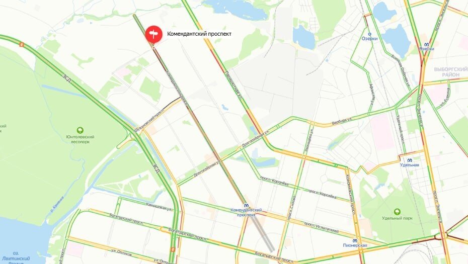 Комендантский проспект второй день стоит в огромной пробке