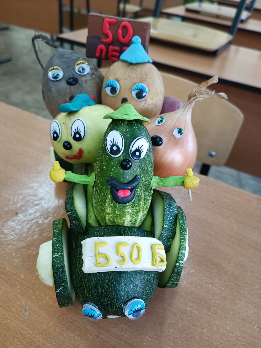 а это мы с классом сделали такую машину из кабачка и заняли первое место