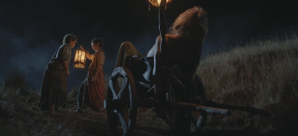 Хоббитянки, как и зрители, не могут понять, кто это. Явно не человек, не тролль, не эльф. Но поскольку он их сразу не сожрал, вроде как и бросать его негоже.