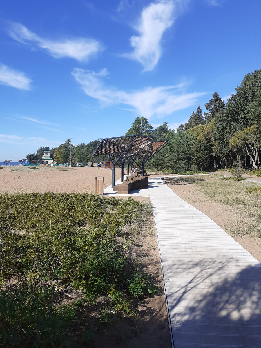 Продолжаем гулять по Зеленогорскому пляжу. Такие скамейки с навесами очень удобные. А это сидения и стол. Сделаны они из какого-то материала. Типа пластика. Очень легкие. Можно легко переставлять. Стоят в тени. А это дорожка выложенная плитками. Ноги будут точно сухие. На песчаном пляже такие сидения с навесами. Лежаки из дерева. Справа раздевалки. Отель на берегу Финского залива. Рядом с Зеленогорским парком Культуры и Отдыха. Клумба в парке. Самолет в парке Зеленогорска. Если не ошибаюсь-АН-24. На фотографиях пока не видно людей, потому что сделаны рано утром. Продолжение о Зеленогорске следует...