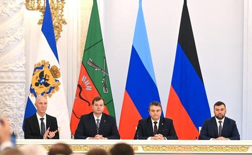 Глава военно-гражданской администрации Запорожской области Евгений Балицкий в пятницу, 30 сентября, сообщил, что Донецкая Народная Республика, Луганская Народная Республика, Запорожская и Херсонская области будут объединены в новый федеральный округ Российской Федерации. Ранее сегодня Президент РФ Владимир Путин подписал договоры о вступлении в состав России Луганской и Донецкой народных республик, Херсонской и Запорожской областей. В Георгиевском зале Кремля прошла официальная церемония подписания договоров о вступлении в состав РФ четырех новых территорий. Подписи под документами поставили российский президент, главы ДНР и ЛНР Денис Пушилин и Леонид Пасечник, а также руководители Херсонской и Запорожской областей Евгений Балицкий и Владимир Сальдо. Балицкий сообщил: "Мы пообщались, обсудили, как это будет. Будет создаваться новый федеральный округ".