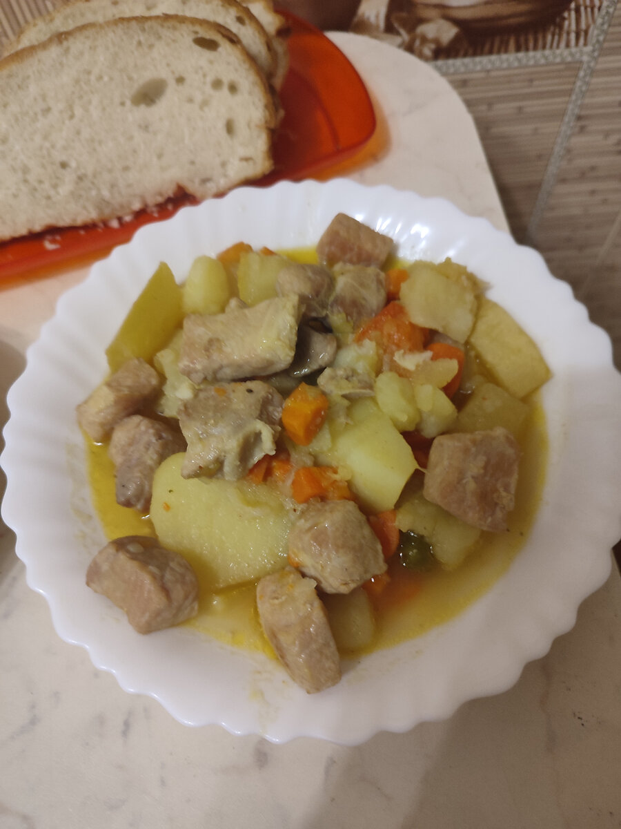 Простой и вкусный рецепт. Ингредиенты: 0,5 кг свинины (или любого другого мяса) 300 гр кабачков 300 гр тыквы (по желанию) 50 гр сушеных грибов (по желанию, с грибами получается более вкусно) 300 гр картофеля 1 болгарский перец 1 морковь 2 головки репчатого лука 3 зубчика чеснока 1 ст л соли 0,5 ч л приправы (на любителя, я использую кавказские специи для курицы) 3 шт лаврового листа 3 ст л растительного масла 2 ст л соевого соуса 3 шт японской айвы по желанию (можно заменить 1/3 лимона). Мясо обжарить на растительном масле до золотистой корочки на режиме жарка с открытой крышкой. Добавить лук, и обжарить ещё 5 минут. Далее добавить соевый соус, соль, приправы. Перемешать. Затем добавляем овощи (картофель, кабачки, тыкву, перец, айву (лимон) морковь, грибы). Залить кипятком, чтоб овощи чуть прикрывало водой. Готовим но режиме "тушение" или "выпечка" 45 минут. За 5 минут до готовности добавить чеснок и лавровый лист. Оставить на режиме "подогрев" минут на 30 томится. Приятного аппетита
