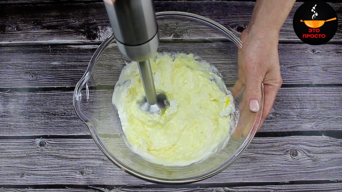 К творогу добавляем сахар, соль, яйцо, сметану и пробиваем блендером до однородности.