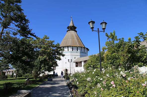 Успенский собор, сооруженный на рубеже XVII-XVIII веков. Собор двухэтажный. Верхний храм - Успения Пресвятой Богородицы - предназначался для праздничных богослужений в летнее время, нижний – Сретенье Владимирской иконы Божией Матери - служил усыпальницей астраханских архиереев.